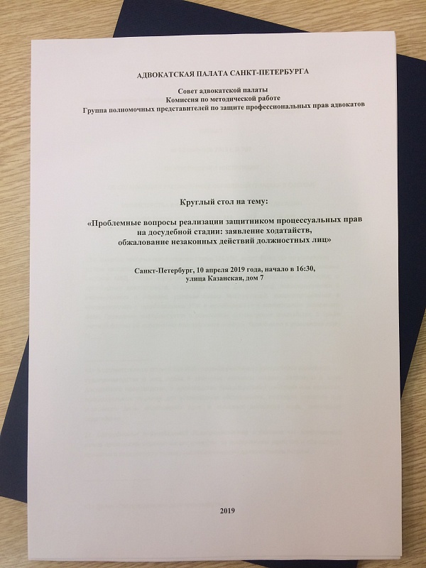 In the conclusion of the Round-table a decision was made that the administration of the Chamber of Advocates of Saint-Petersburg has to address the problem to the Federal Chamber of Advocates, administration of the Russian Interior Ministry and the Attorney General of Russia, in order to change the current situation.
